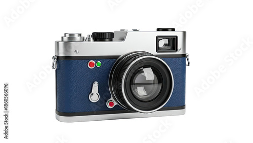 Retro Blue Leather Camera with Silver Accents