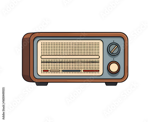 Retro Brown Radio with Beige Grill, Transparent Background, Vintage Design Element