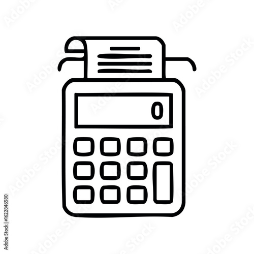 Retro calculator with paper roll for financial calculations – stock vector icon in line style