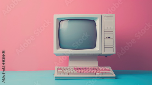 Retro Computer on Colorful Background: Nostalgic Vintage Technology Concept