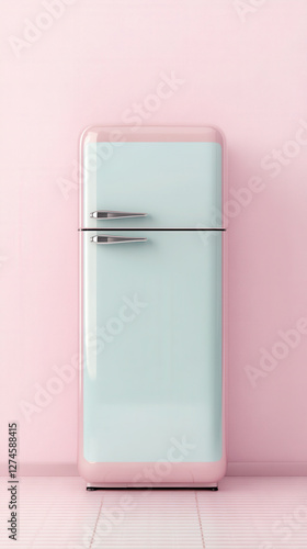 Retro cream fridge in pastel pink environment for interior design