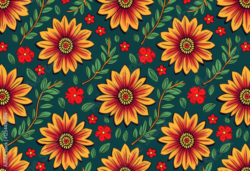Retro Floral Seamless Pattern with Sunflowers