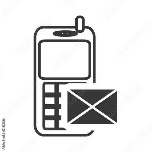 retro mobile phone device with mail envelope icon silhouette. vector illustration