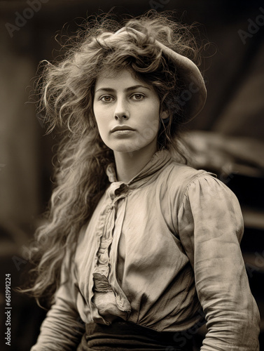 Retro Portrait of Unknown Young Woman from the turn of the Century Around 1880 to 1930 Wallpaper Background Card Cover Digital Art