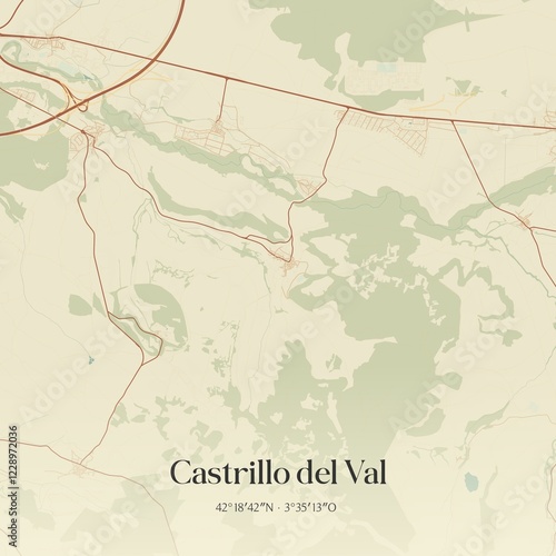 Retro Spanish map of Castrillo del Val, Castilla y Le�n. Vintage street map.