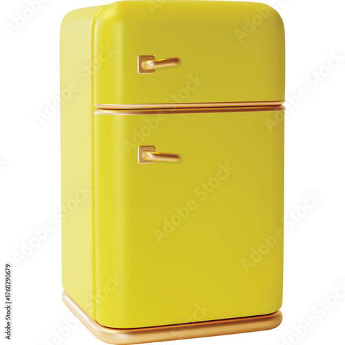 Retro Style Yellow Two Door Refrigerator With Gold Handles Isolated On White Background With Transparent Background