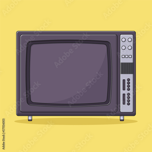 Retro TV Vector Icon Illustration with Outline for Design Element, Clip Art, Web, Landing page, Sticker, Banner. Flat Cartoon Style