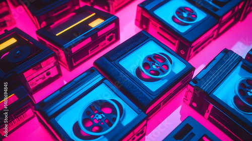 Retro VHS Tapes Aesthetic in Neon Lights and Vibrant Colors