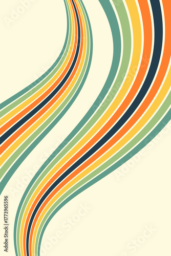 Retrofuturism poster design in trendy retro line style. Modern art poster retro vintage style 70s stripes background template lines shapes vector design.