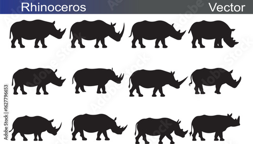 Rhinoceros Silhouette Vectror Illustration on White Background