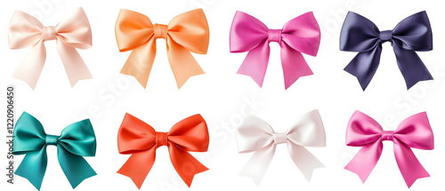 Ribbon bows in various colors and styles. Isolated on White Background, clipping path -