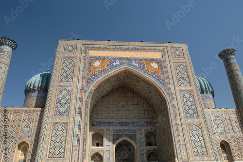 richly decorated with paintings and colorful ceramic tiles madrasah, Registan Square, Samarkand