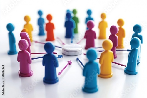 right 3 people is connect each other freely and the right 3 people is in a circle , show a simple transfer button in the middle.