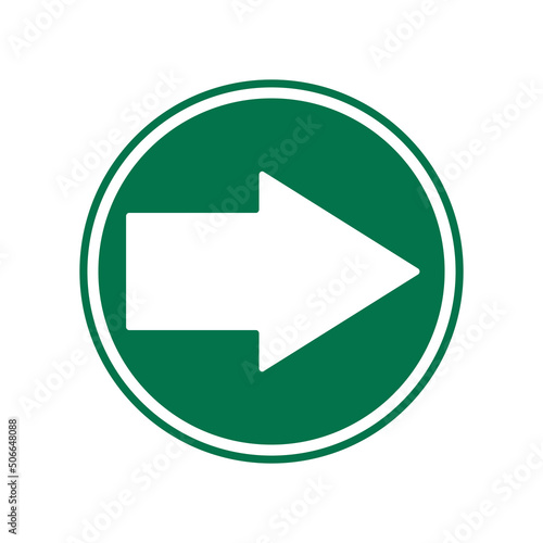 Right direction white green arrow in round industrial sign, navigation label vector