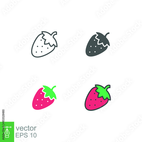 Ripe and fresh strawberry fruit or strawberries silhouette flat line color design for food apps and website. Organic Fruit, vegan, vegetarian icon Vector illustration Design on white background EPS10