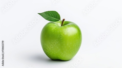 Ripe Green Apple with Leaf on White Background. Fresh, Healthy, Healthy Life, Fruit