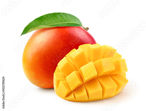 Ripe mango with slice isolated on white background.