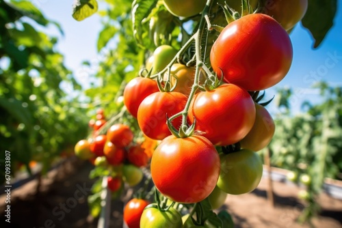 ripe tomatoes on vine under the sunlight