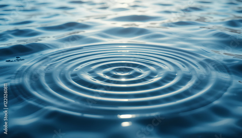 Ripples on clear water surface with splashing droplets