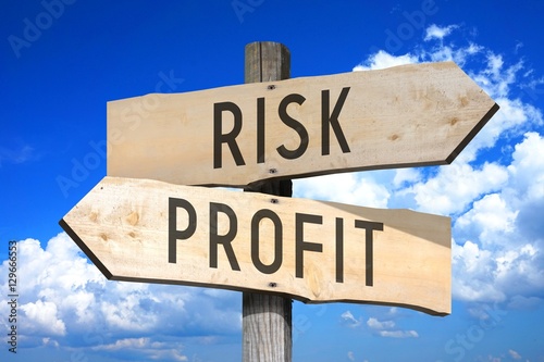 Risk, profit - wooden signpost