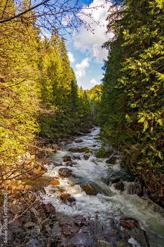 River in the forest flowing down from the mountains