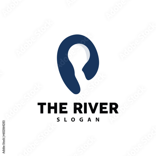 River Logo Design, River Creek Vector, Riverside Illustration With A Combination Of Mountains And Nature, Product Brand