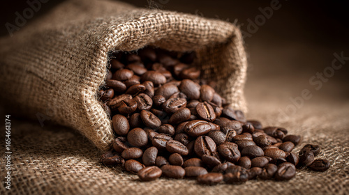 Roasted Coffee Beans Spilled from Burlap Bag