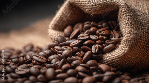 Roasted Coffee Beans Spilling From Burlap Sack