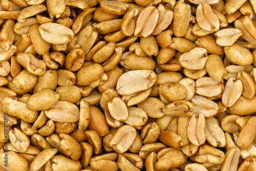 roasted salted peanuts photographed close-up on a white background