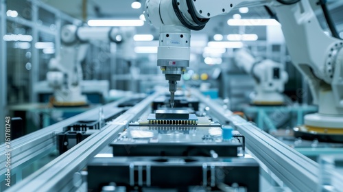Robotic Arm Operating Machine in Factory