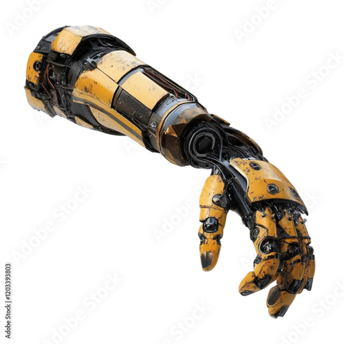 Robotic Arm Reaching Out Futuristic Technology Mechanical Design Yellow Black