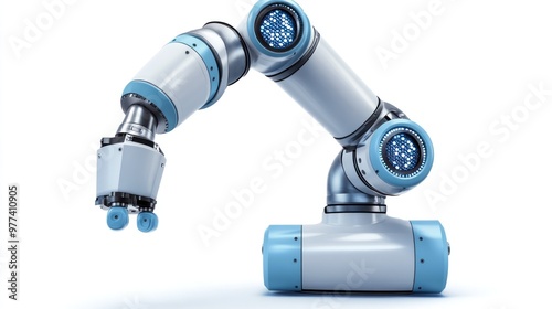 Robotic process automation in industry, isolated on white background, focusing on collaborative robots and coding
