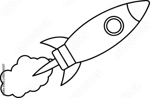 Rocket launch line art element, rocket with Smoke silhouette black and white illustration