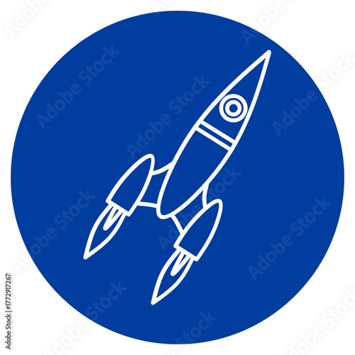 Rocket Ship Icon on Blue Circle