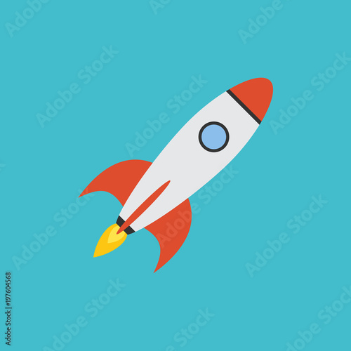 Rocket vector icon. Start up concept symbol space roket ship in trendy flat style isolated on blue background