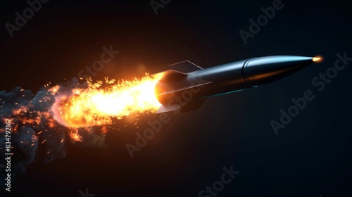 Rocket with Fiery Trail in Dark Space. Generative ai