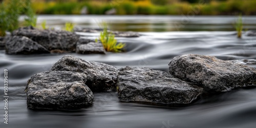 Rocks in a river with blurred water effect