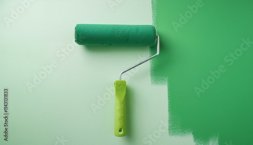 Roller applying paint to wall, scene of smooth rolling on wall
