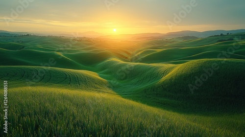 Rolling Green Hills Sunset Landscape Sunrise Scenery