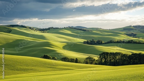 Rolling Green Hills Under a Cloudy Sky