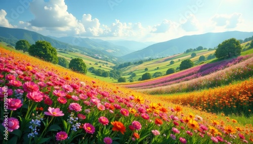 Rolling hills are blanketed with a sea of blooms, garden, blooming flowers, colorful flowers