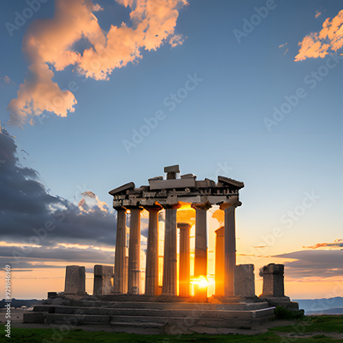 Roman ruins at dawn. Created with Generative AI technology