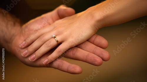 Romance picture of person hold lovely couple hand. Romantic people romantically show love hold hands together symbolized sharing happiness and sadness as married husband and wife become family. AIG53.