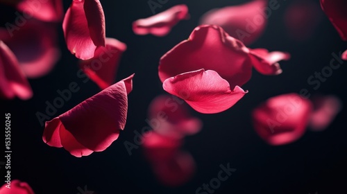 Romantic Falling Red Rose Petals on Dark Background for Special Occasions