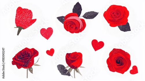Romantic Icons with Hearts and Roses Illustration for Love Theme