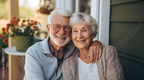 Romantic senior couple by the outside. Affectionate elderly couple enjoying spending some quality time together after retirement at the veranda
