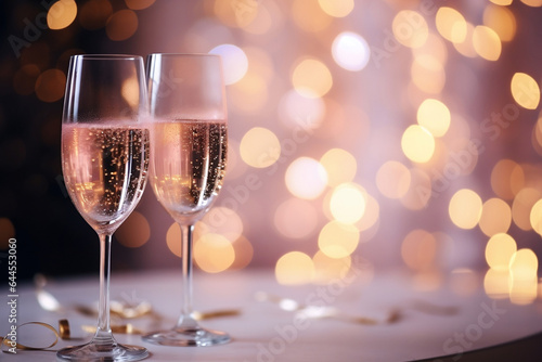 Romantic Toast with Pink Champagne Glasses in Bokeh Sparkle