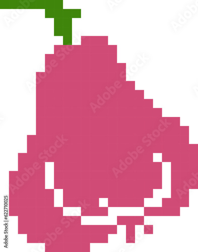 Rose apple cartoon icon in pixel style.