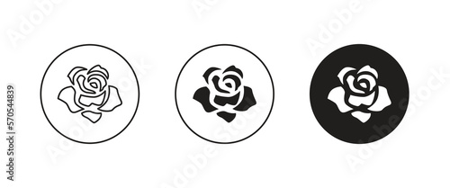 rose flower, Valentines Day, international women's or mother's day, beauty cosmetic salon, luxury beauty, floral icon symbol logo illustration,editable stroke, flat design style isolated on white