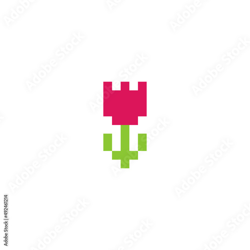 Rose icon. Pixel art. Logo of the flower shop. Element for the design of the greeting card International Women's Day, Mother's Day. Sticker design. Isolated vector illustration.